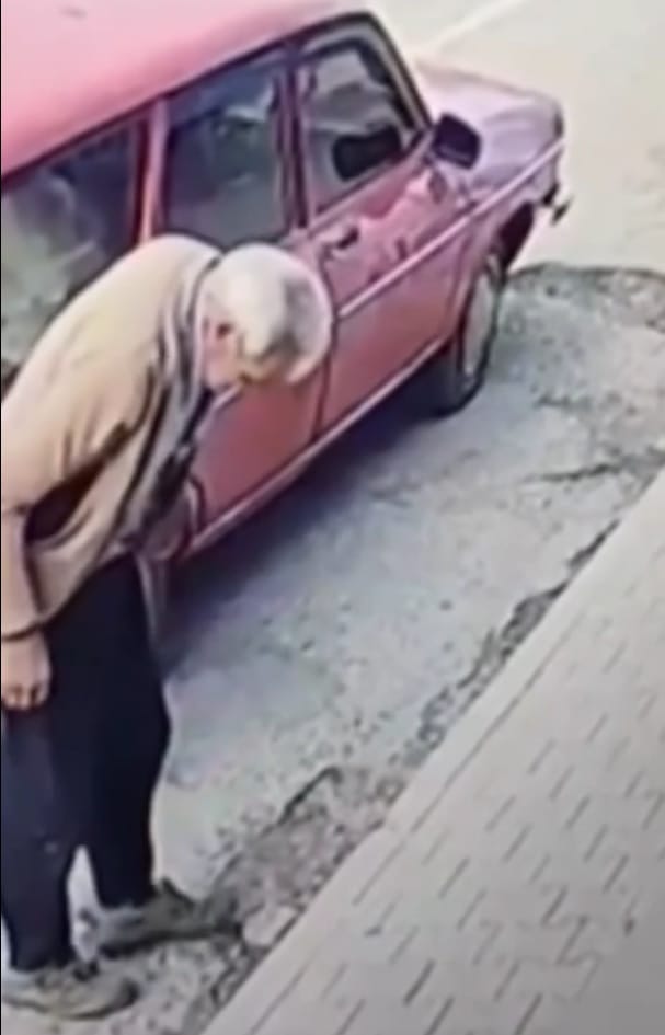 Güvenlik kamerasına yansıyan görüntülerde, yaşlı adamın kapı önündeki tereddüdü, temizleme çabası ve içeriye çorapla giriş anları net bir şekilde görüldü.